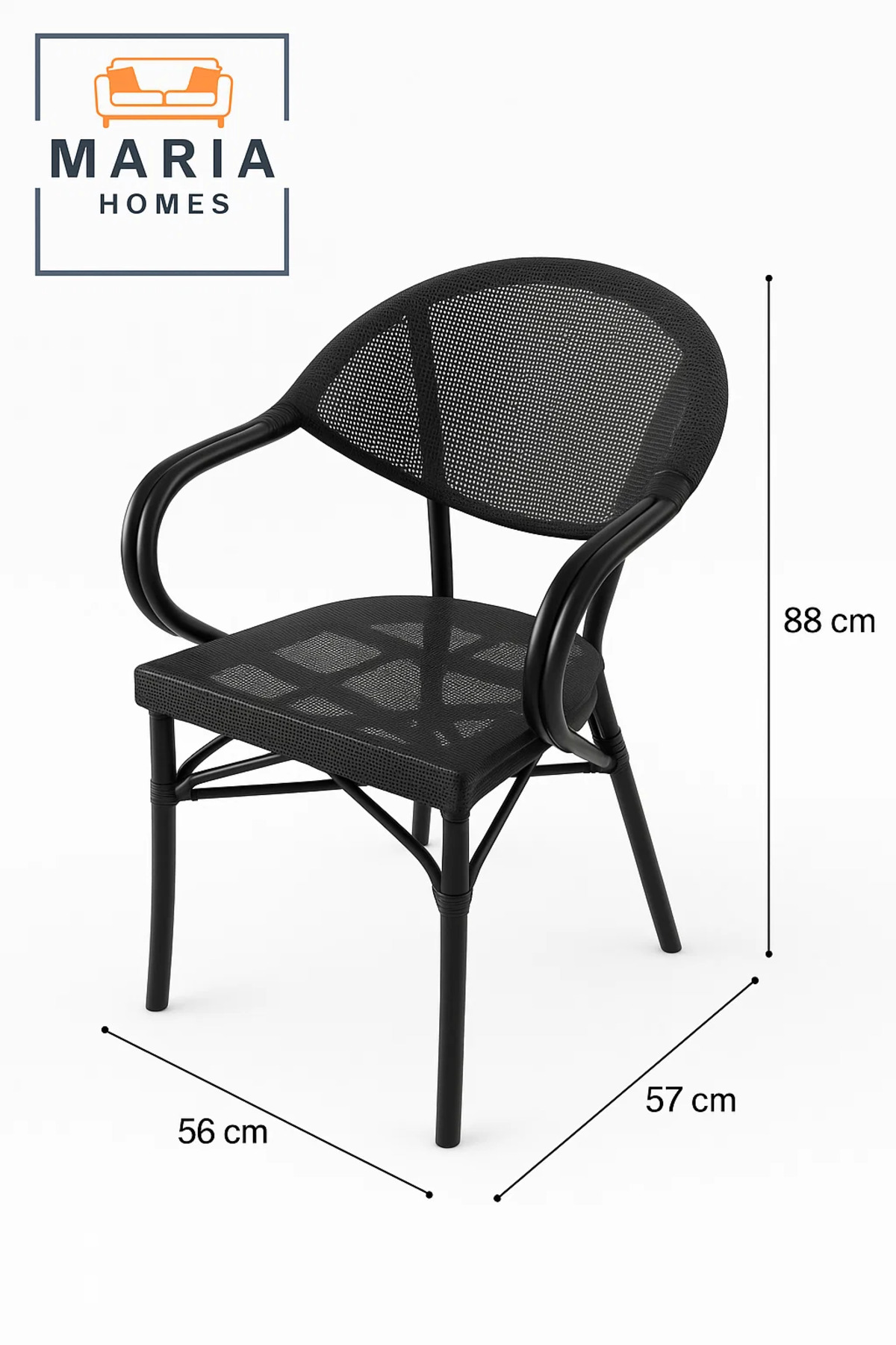 كرسي بذراعين معدني شبكي أسود عصري - قابل للتكديس، للاستخدام الداخلي والخارجي، بتصميم صناعي
