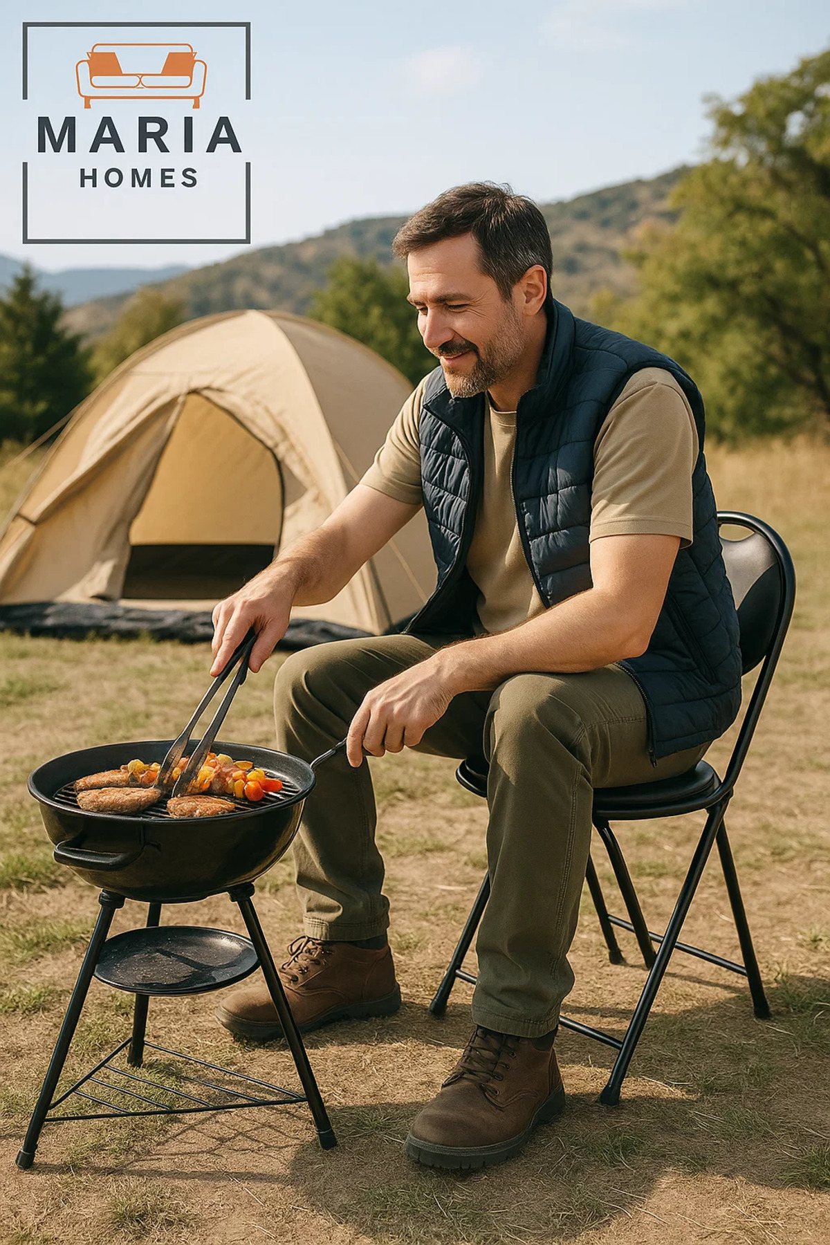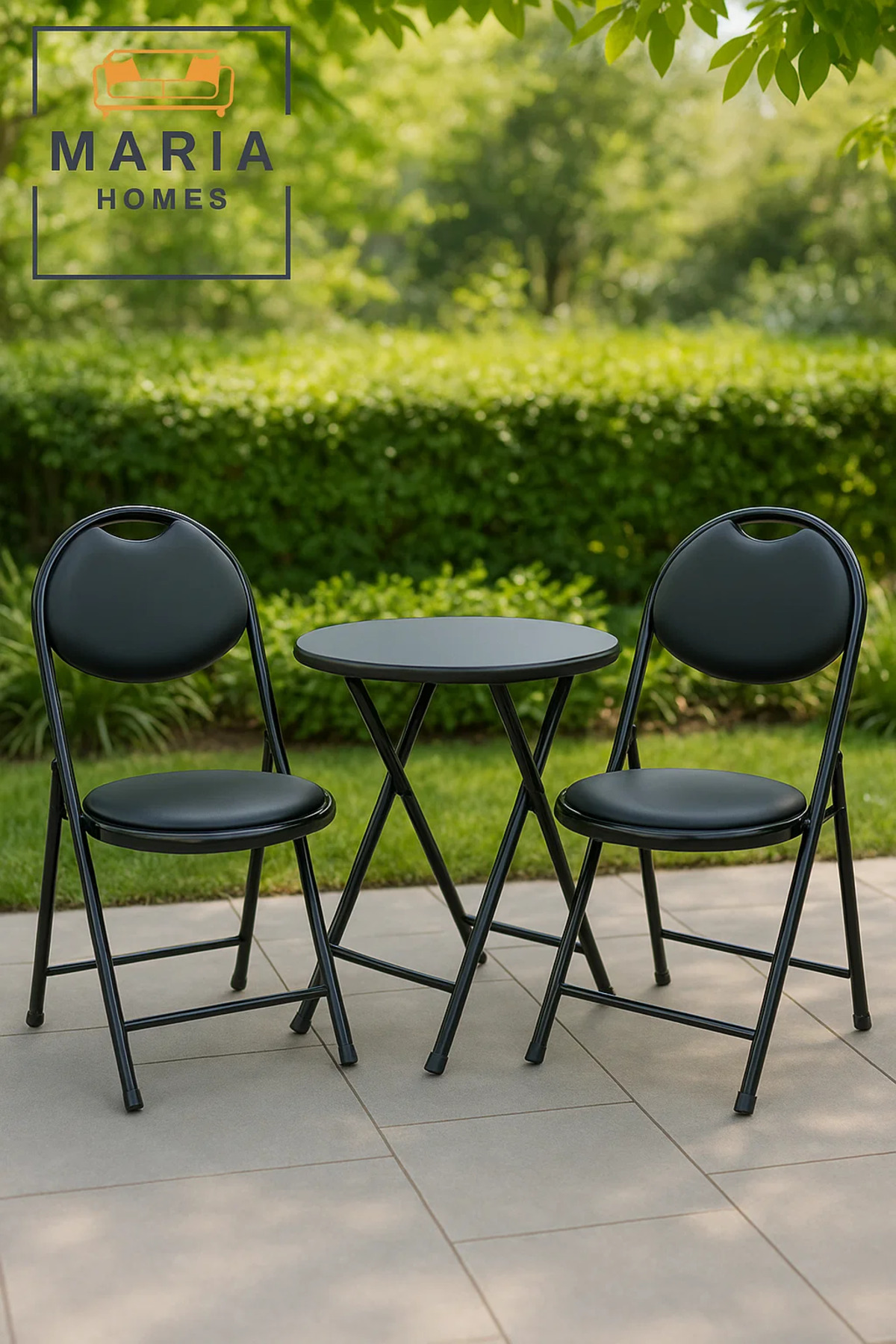 كرسي دائري أسود صغير الحجم قابل للطي مع مقعد مبطن - مثالي للمنزل والمناسبات
