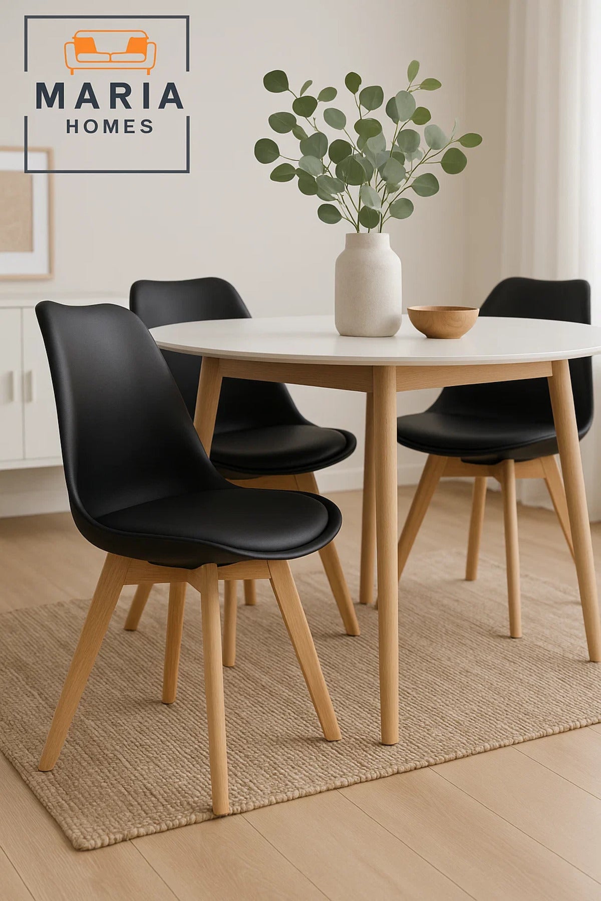 Upgrade your seating with this modern black dining chair, crafted to blend style, comfort, and durability.; Featuring a smooth, ergonomic plastic seat, it offers excellent support for extended sitting whether you're dining, working, or relaxing.; The minimalist black finish adds a sleek, contemporary look that pairs well with any interior dŽcor, from Scandinavian to industrial.; The solid wooden legs provide a strong foundation and a natural contrast to the seat, enhancing its visual appeal.; Ideal for dining rooms, home offices, or commercial settings like cafes and meeting rooms, this chair combines functionality with aesthetic charm.; Lightweight and easy to maintain, itÕs a perfect addition to any modern space.